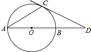 如图,AB是⊙O的直径,AC是⊙O的弦,过点C的切线交AB的延长线于点D,若∠D=30°,求∠A的度数.