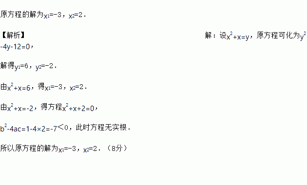 利用以上解法, 解方程(x2+x)2-4(x2+x)-12=0.
