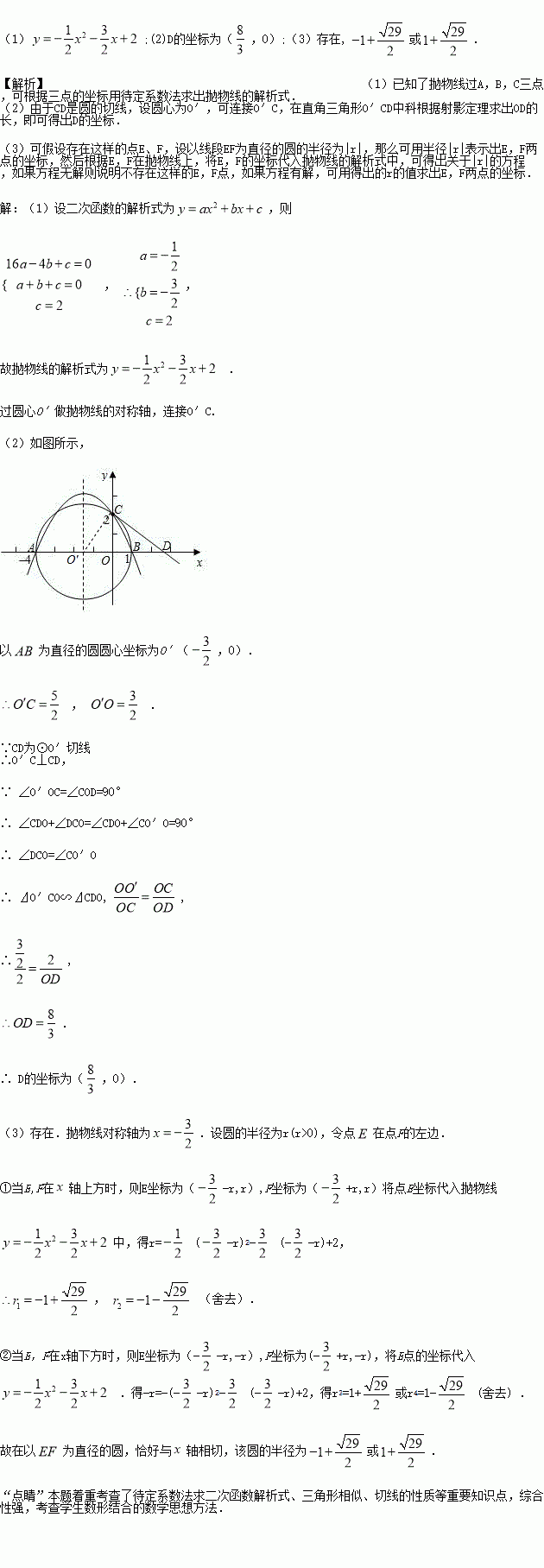 (3)设平行于x轴的直线交抛物线于E,F两点,问是否存在以线段EF为直径的圆,恰好与x轴相切?若存在,求出该圆的半径,若不存在,请说明理由.