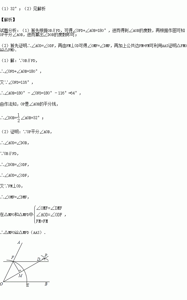 EF长为半径作圆弧,两条圆弧交于点P,作射线OP,过点F作FD∥OB交OP于点D.