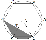 点评:此题主要考查了正多边形和圆以及扇形面积求法,得出阴影部分面积=S扇形OBC是解题关键.
