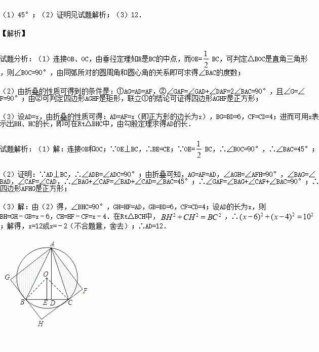 (2)将△ACD沿AC折叠为△ACF,将△ABD沿AB折叠为△ABG,延长FC和GB相交于点H.求证:四边形AFHG是正方形.