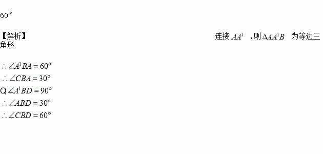 如图所示,用一根长度足够的长方形纸带,先对折长方形得折痕l,再折纸使折线过点B,且使得A在折痕l上,这时折线CB与DB所成的角为:_____。