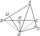 分析:连接DB、DC,求出DB=DC,DM=DN,根据HL证出Rt△DMB≌Rt△DNC即可.