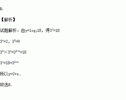 中学数学中,我们知道加减运算是互逆运算,乘除运算也是互逆运算;其实乘方运算也有逆运算,如式子23=8可以变形为3=log28, 2=log525也可以变形为5 2=25;现把式子3 x=2表示为 x=log32,请你用x来表示 y =log318,则y=( )