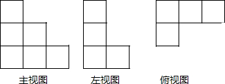 分析 主视图有3列,每列小正方形数目分别为3,2,1;左视图有2列,每列小正方形数目分别为3,1;俯视图有3列,每行小正方形数目分别为2,1,1.据此画出图形即可.