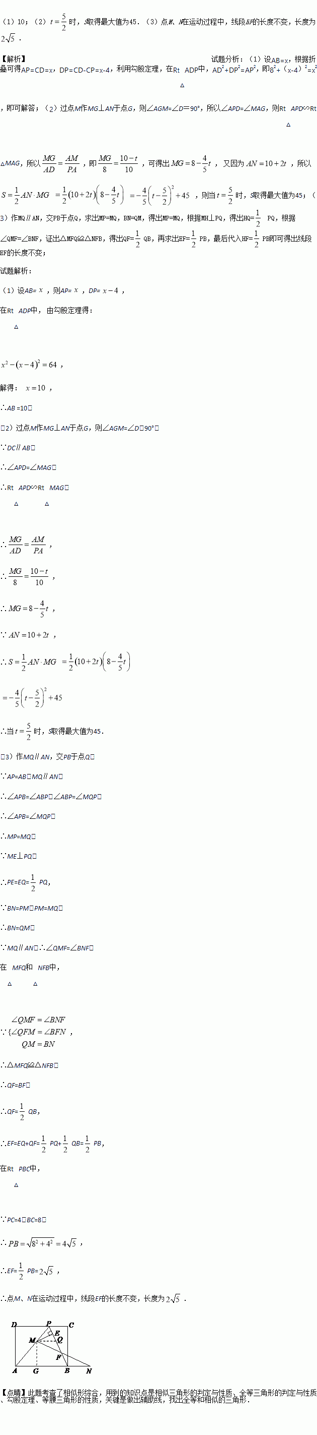 (3)若点M和点N的运动速度相等,作ME⊥BP于点E.试问当点M、N在运动过程中,线段EF的长度是否发生变化?若变化,说明理由;若不变,求出线段EF的长度.
