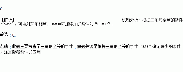 如图:如果OA=OD,用“SAS”说明△AOB ≌△DOC,还需 ( )