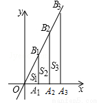如图,已知直线l:y=2x,分别过x轴上的点A1(1,0)、A2(2,0)、…、An(n,0),作垂直于x轴的直线交l于点B1、B2、…、Bn,将△OA1B1,四边形A1A2B2B1、…、四边形An﹣1AnBnBn﹣1的面积依次记为S1、S2、…、Sn,则Sn=( )