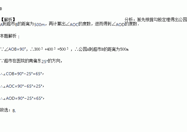 如图是医院、公园和超市的平面示意图,超市