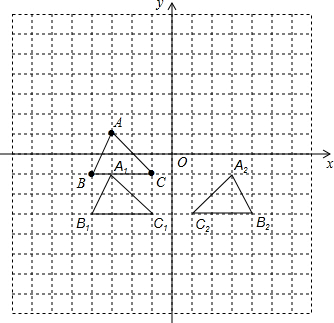 如图,点A、B、C的坐标分别为(-3,1)、(-4,-1)、(-1,-1),将△ABC先向下平移2个单位,得△A1B1C1;再将△A1B1C1沿y轴翻折180°,得△A2B2C2;.