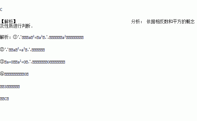 关于﹣(﹣a)2的相反数,有下列说法:①等于a2;②等于(﹣a)2;③值可能为0;④值一定是正数.其中正确的有( )