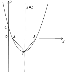 (2)现根据称轴为x=2,求出b的值,再求出△APB的高等于1时c的值,再通过图形变化直接得出c的值.