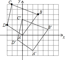 解答 解:(1)如图所示:四边形ABCD即为所求;(2)如图所示:四边形A′B′C′D′即为所求;(3)四边形ABCD的面积为:6×6-$\frac{1}{2}$×1×4-$\frac{1}{2}$×2×5-$\frac{1}{2}$×2×3-$\frac{1}{2}$×3×4=36-2-5-3-6=20.