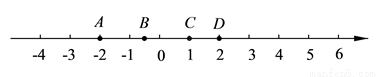 如图,数轴上有A,B,C,D四个点其中表示2的相反数的点是( ).