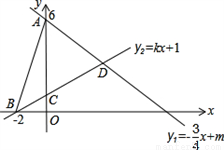 x+m与y轴交于点A(0,6),直线l2:y2=kx+1分别与x轴交于点B(-2,0),与y轴交于点C.两条直线相交于点D,连接AB.