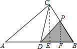 解答 解:当0<x≤4时,如图,作CE⊥AB,PF⊥AB,