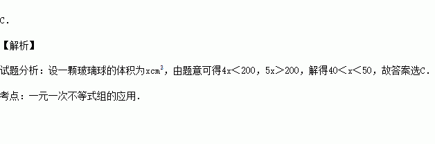 根据以上过程,推测这样一颗玻璃球的体积在( )