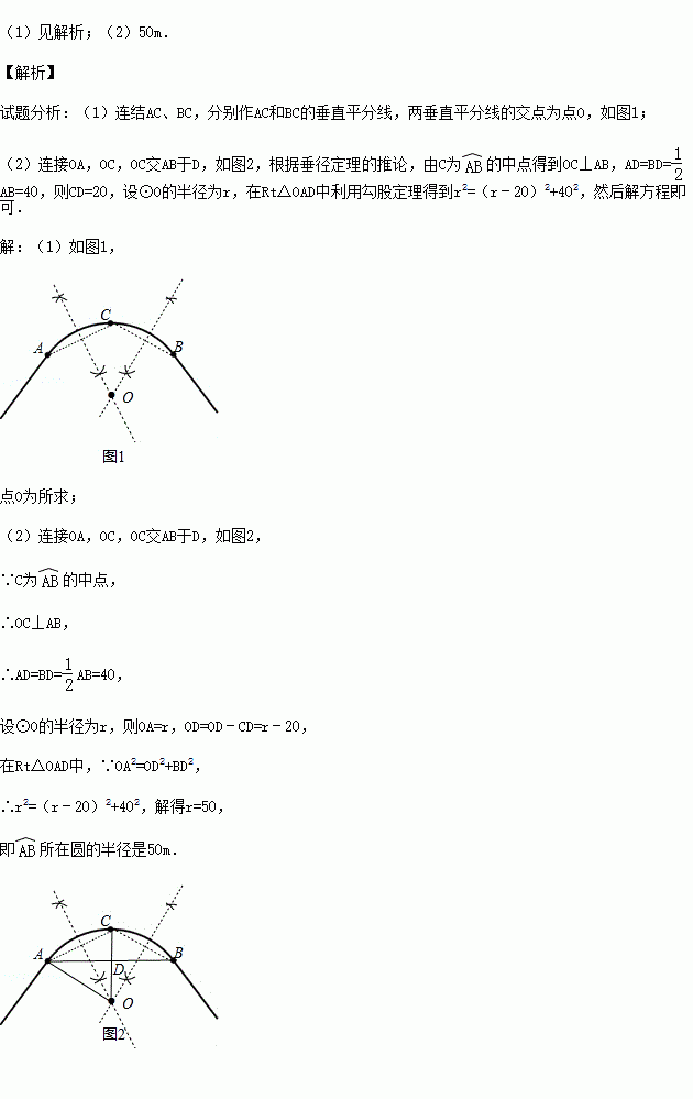 所在圆的圆心O;(要求保留作图痕迹,不写作法)