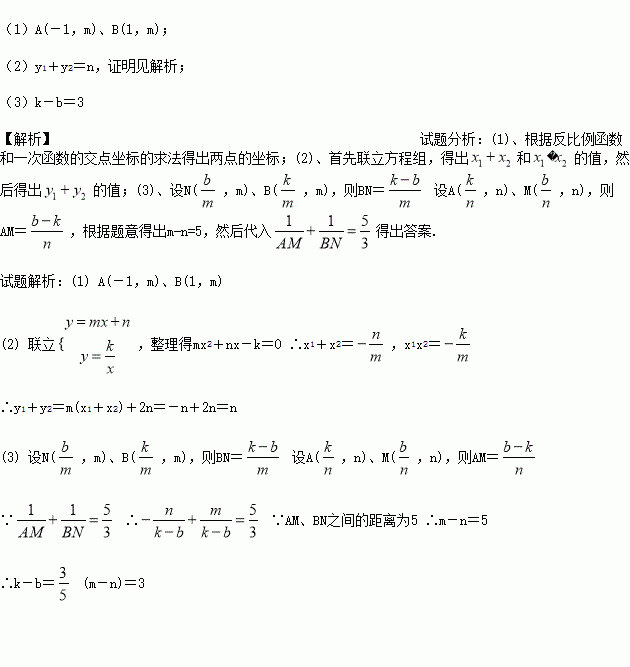 (1) 若m=k,n=0,求A、B两点的坐标(用m表示)