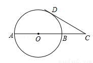 如图,已知AB是⊙O的一条直径,延长AB至C点,使得AC=3BC,CD与⊙O相切,切点为D.若CD=3,则线段BC的长度等于___________.