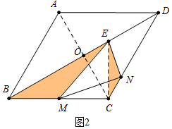 分析 (1)如图1中,连接AE、EC、AC,AC交BD于点O.首先证明△DEC是含有30°的直角三角形,由△EDN∽△ECM,推出$\frac{DN}{CM}$=$\frac{DE}{EC}$=$\frac{2}{1}$,推出CM=$\frac{1}{2}$DN,由此即可解决问题.