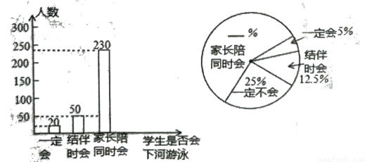 (2)“家长陪同时会”的学生所占比例为 %,"一定不会"的学生有 人