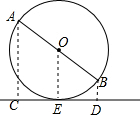 分析 当AB与l不平行时,分别过点A和点B作直线l的垂线,AC+BD即为所求的距离之和,连接OE,根据切线性质得到OE垂直于直线l,进而得到四边形ABDC为梯形,根据梯形中位线定理和直径AB的长度即可求出距离之和;当AB与l平行时,显然距离之和等于直径AB的长.