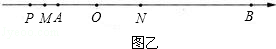 ②当点P在点A的左侧运动时(如图乙).MN=NP-MP=$\frac{1}{2}$BP-$\frac{1}{2}$AP=$\frac{1}{2}$AB=5![]()