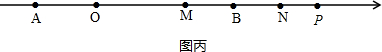 ③当点P在点B的右侧运动时(如图丙) MN=MP-NP=$\frac{1}{2}$AP-$\frac{1}{2}$BP=$\frac{1}{2}$AB=5![]()