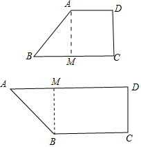 解答 解:①当AB与下底的夹角为45°时(上图),作AM⊥BC于M.则四边形AMCD是矩形,