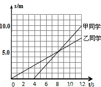 C、0s~8s内,甲乙通过的路程都是5m,则甲乙两同学通过的路程相等,选项C正确;
