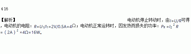 在研究微型电动机的性能时,小希用如图甲所示的实验电路进行实验.通过调节滑动变阻器R使电动机实现停止转动和正常运转,并将测量数据记录在图乙表中,则这个电动机的电阻为___Ω.在正常运转时因发热而损失的功率为_______W.