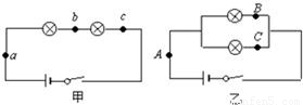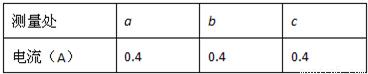 (1)按如图甲所示的电路图连接好电路后,把电流表先后接在电路中的a、b、c处时,得到如下所示的记录表格: