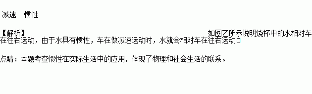 如图甲所示,盛有水的烧杯随小车一起水平向右做匀速直线运动,当烧杯中的水面出现如图乙所示的状态时,则小车此时正在做____(选填“加速”“减速”或“匀速”)运动,做出上述判断的根据是水具有______。