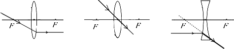 凸透镜的三条特殊光线:①通过焦点的光线经凸透镜折射后将平行于主光轴.②平行于主光轴的光线经凸透镜折射后将过焦点.③过光心的光线经凸透镜折射后传播方向不改变.