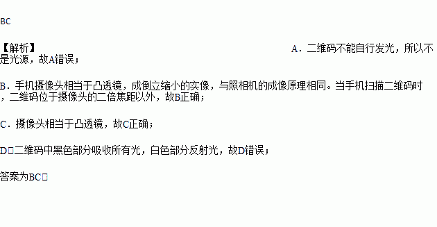 D. 二维码中黑色部分反射光,白色部分吸收光