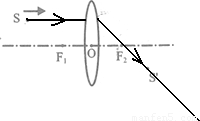 【答案】分析:(1)平行于主光轴的光线经凸透镜折射后过焦点,点光源S沿平行主轴的方向向透镜移动时,其中一条光线平行于主光轴总不改变方向,经凸透镜折射后还是过焦点,所有的折射光线会聚成像,像点一定在过焦点的这条折射光线上.