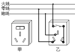 乙图中是甲中的插座的内部构造,请用笔画线代替导线将图中右图连接完整.