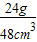 谢玲同学用天平称得一个木块质量是24g,体积是48cm3,则木块密度为    g/cm3,合    kg/m3