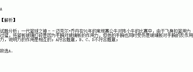 一代篮球之神﹣﹣迈克尔•乔丹在1991年的常规赛公牛对阵小牛的比赛中,由于飞身扣篮用力过猛,将篮板玻璃打碎;但他的手腕也同时受伤.总结这些情景,主要说明了( )