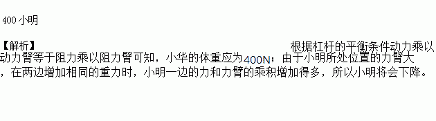 小明和小华玩跷跷板,小华坐在离支点1.5m处,当小明坐在离支点2m处时,刚好能撬动小华,此时跷跷板在水平位置平衡.已知小明体重为G1=300N,则小华体重G2为__________N.若两人再拿同样重的铁球,则__________(填“小明”或“小华”)将下降。