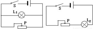 解答:解:左图为并联电路,而并联电路中各支路用电器互不影响,因此滑动变阻器的滑片向左移时,L1的亮度不变;