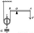 如图所示,动滑轮重0.5N,物体重3.5N,当OA=2OB时,为使轻质杠杆保持水平平衡、在A端所加的力应为(不计摩擦)![]()