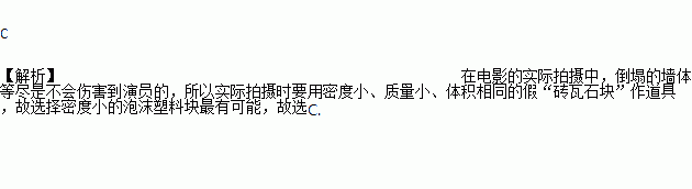 电影《唐山大地震》作为一个非传统意义的灾难片,为了真实表现那场毁灭一座城市和几十万人生活的灾难,不计成本打造地震场面,重现那“天崩地裂,房屋倒塌”的场面.但在实际拍摄中,倒塌的墙体等并不会伤害演员,砌成这种墙体的物块最有可能是( )