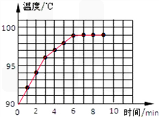 | 温度/℃ | 90 | 92 | 94 | 96 | 97 | 98 | 99 | 99 | 99 | 99 |