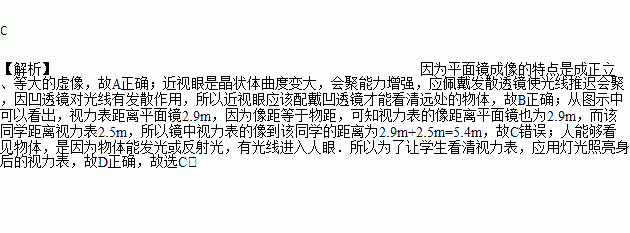 D. 为了让学生看清视力表,应用灯光照亮身后的视力表