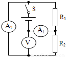 【答案】分析:由电路图知:两电阻并联,电流表A1测干路电流,电流表A2测电阻R2所在支路电流,电压表测量并联电路两端电压;