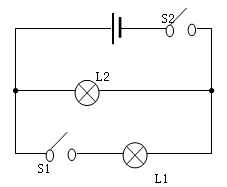 解析试题分析:由实物电路图可知,从电源正极出发,电路分为两条支路,一路经灯L2,另一路经开关S1、灯L1,然后两条支路都经过s2,回到电源的负极;开关S2接在干路中,开关S1控制灯L1所在支路;