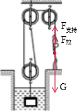 图中滑轮组有2断绳子,根据公式η=$\frac{{W}_{有用}}{{W}_{总}}$=$\frac{Fh}{{F}_{拉}s}$=$\frac{Fh}{{F}_{拉}×2h}$=$\frac{F}{2{F}_{拉}}$=$\frac{{G}_{2}-{ρ}_{水}Vg}{2{F}_{拉}}$可知,